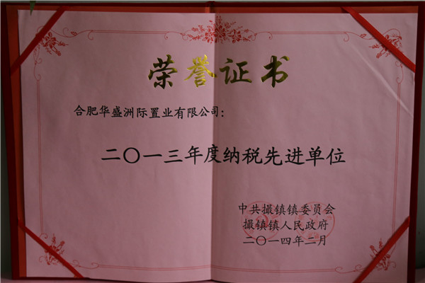 2013年度纳税先进企业(安徽撮镇)