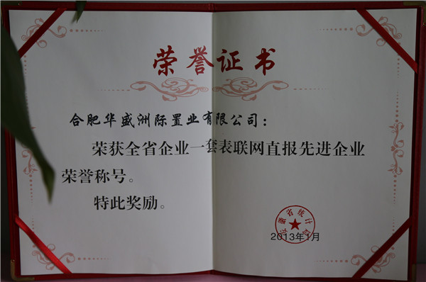 2013年荣获全省企业一套表联网直报先进企业荣誉称号