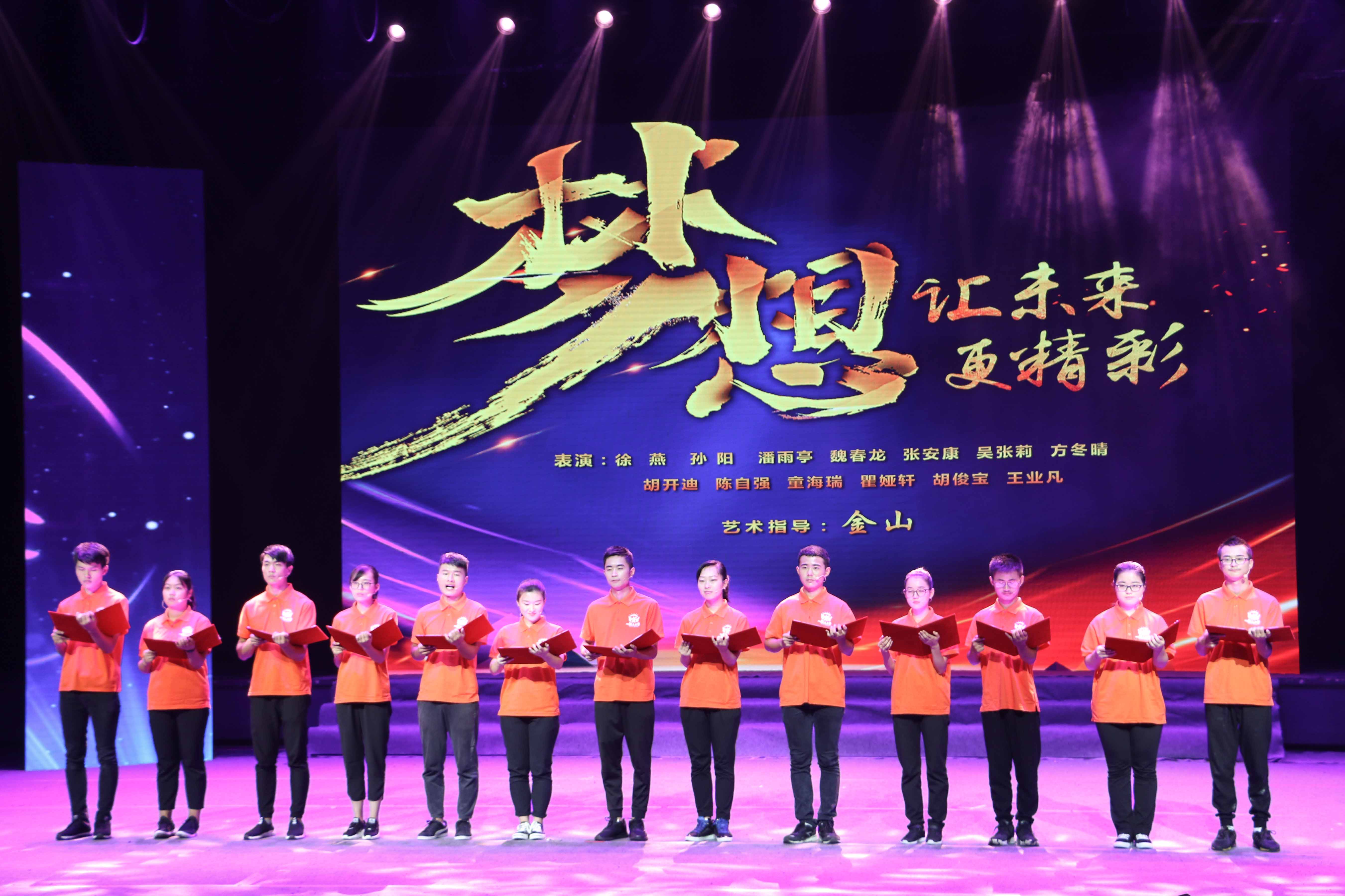 晚会现场,14位贫困大学生为现场观众集体朗诵了诗歌《梦想,让未来更精彩》。孩子们声情并茂,饱含深情,让台下的观众不禁动容,掌声雷动。华盛集团作为爱心企业为即将入学的准大学生颁发了爱心助学金。同时,华盛集团获颁了“爱心助学单位”的荣誉奖牌。